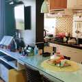 Cozinha do tipo americana, com armários planejados.