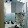 Banheiro com gabinete e box de vidro blindex.