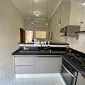 Cozinha gourmet com piso de porcelanato.
