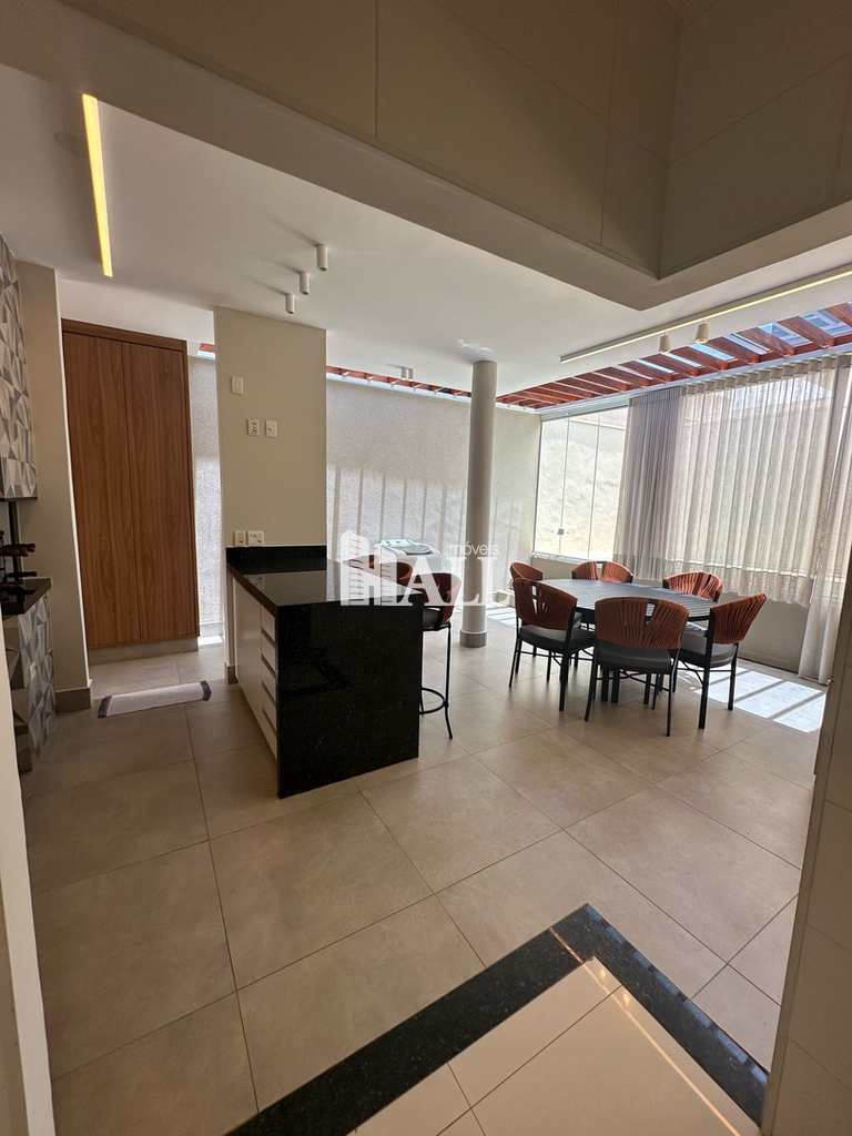 3 dormitórios, 3 suítes, 5 banheiros, 1 sala (dois ambientes), 1 cozinha, 1 escritório, área gourmet fechada, lavanderia, piscina com aquecedor e hidro, 4 vagas de garagem