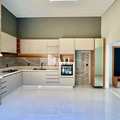 Com planta pensada para o conforto familiar, a casa dispõe de 3 dormitórios, sendo 3 suítes, além de 5 banheiros que atendem aos moradores e visitantes com privacidade. A sala proporciona bom espaço para quatro ambientes e a cozinha é prática e integrada, ideal para a rotina diária.