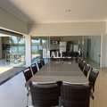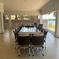 🍴 Área gourmet: Mesa com 12 lugares, ventilador, jogo de sofá.